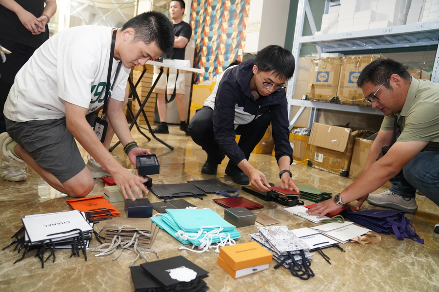 今年9月,宝山警方对该售假团伙开展集中收网行动,成功将薛某等22名犯罪嫌疑人一举抓获,现场查获的产品价值超2000万元,累计销售金额超5000万元。记者从现场视频看到,别墅内,各种品牌首饰盒子堆成“小山”,假冒产品按不同型号有序排列;另一间屋子里,则放着许多品牌包装材料。