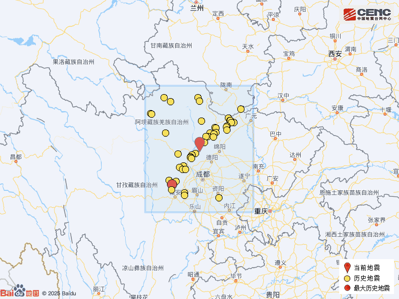 历史地震:根据中国地震台网速报目录,震中周边200公里内近5年来发生3级以上地震共76次,最大地震是2022年6月1日在四川雅安市芦山县发生的6.1级地震(距离本次震中163公里),按震级大小前50次历史地震分布如图。